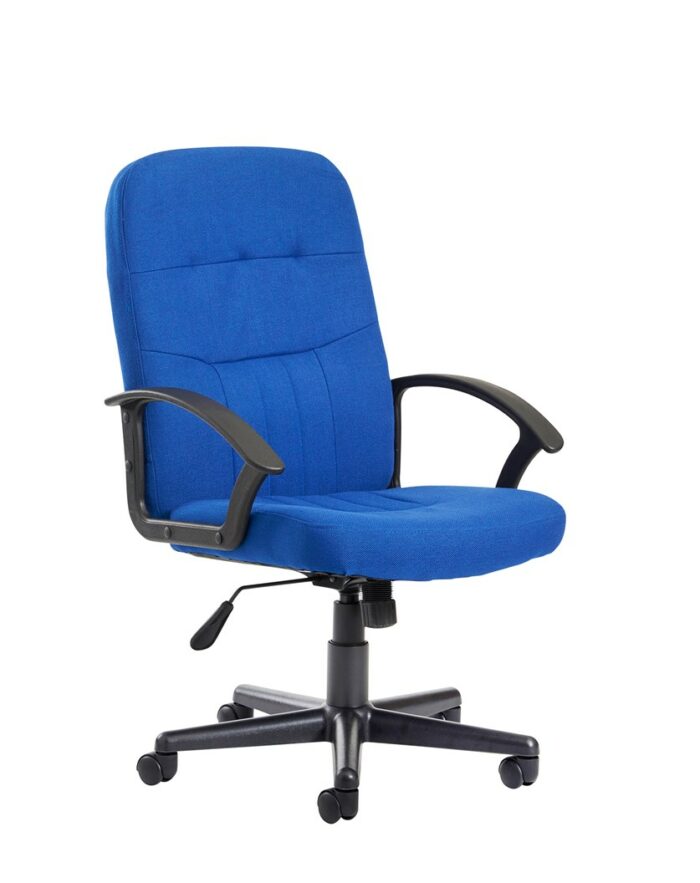 The Cavalier manager seating range is available as a soft, supple leather faced chair or as a fabric chair in blue or charcoal, both carefully stitched and tufted for plush comfort and a most elegant look. Designed to complement the managers chair, the black leather Cavalier visitors chair will also make a stunning addition to any conference room or waiting area.