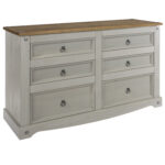 This 3+3 drawer wide chest offers loads of useful storage combined with antique coloured wax finish complimented with black metal hardware.