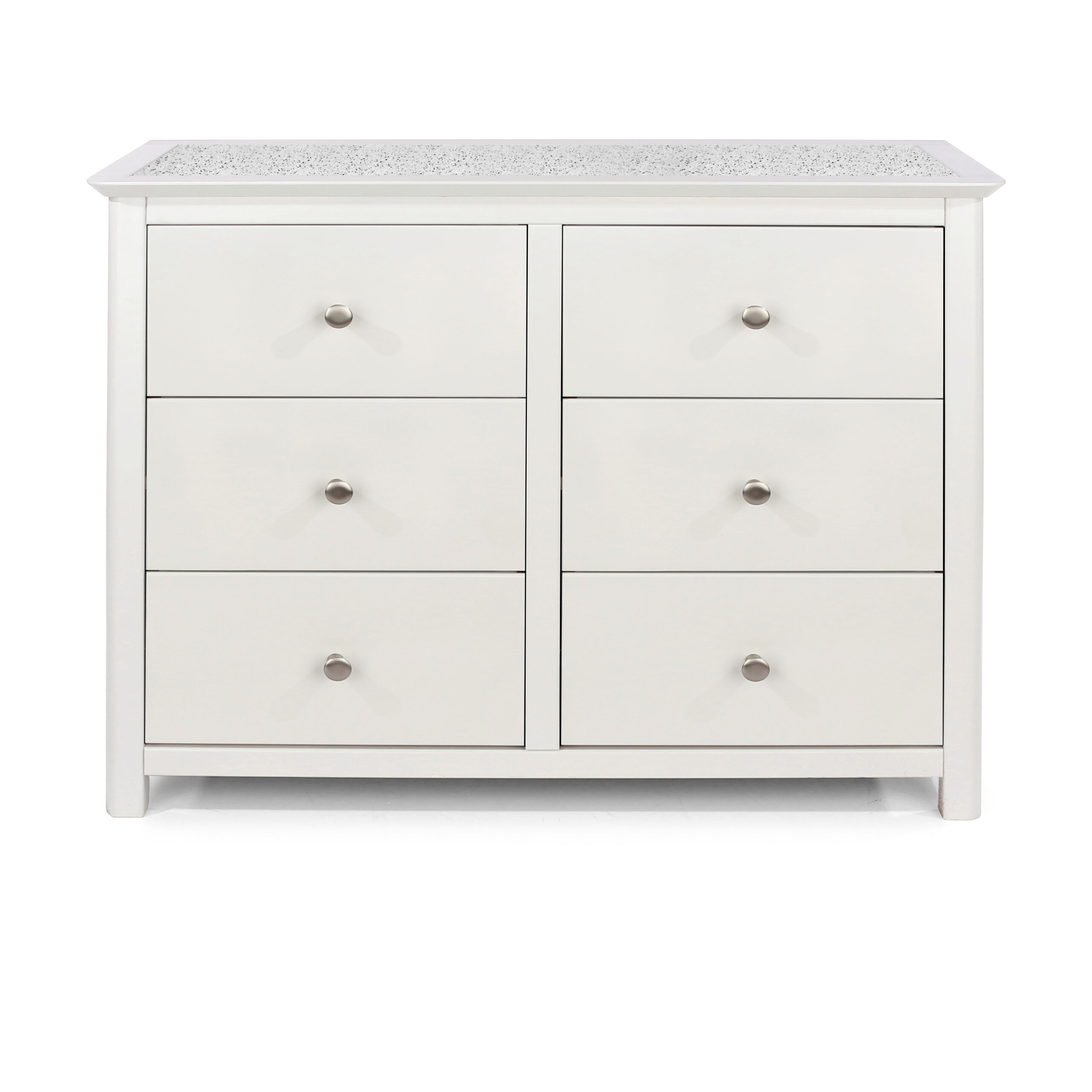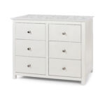 A real statement piece. This double wide chest features 6 drawers and is finished in a white paint with a real stone inset top which is very hardwearing and easy to clean