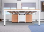 Horizontal and vertical cable management allows cables to rise from the floor via single leg and mass cable risers, to improve office aesthetics and safety.