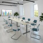 The new Elev8? Touch height adjustable tables combine unique design with versatility to transform corporate spaces like boardrooms into flexible meeting places. Lack of physical activity in offices is considered the main reason for back pain, fatigue and other complaints, and the majority of boardroom meeting are sedentary environments, so you can vary your position from sitting to standing allowing for a variety of postures throughout the meeting.