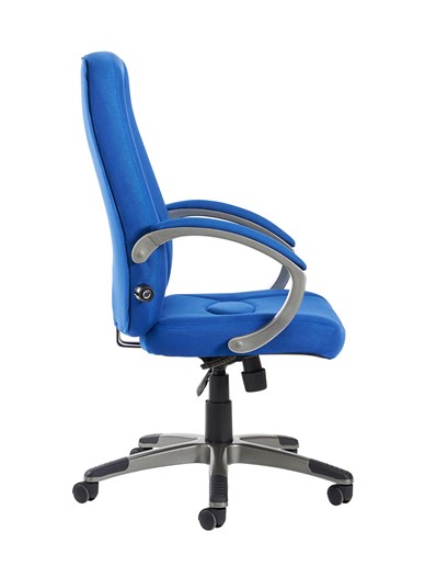 Lucca is a fully upholstered chair which is ideal for manager?s offices and front of house areas where design, style and function are a top priority. The adjustable lumbar, high back, moulded seat and back foam ensure comfort whilst the gun metal nylon base and arms present a modern design that adds a rich pop of colour to your work space.