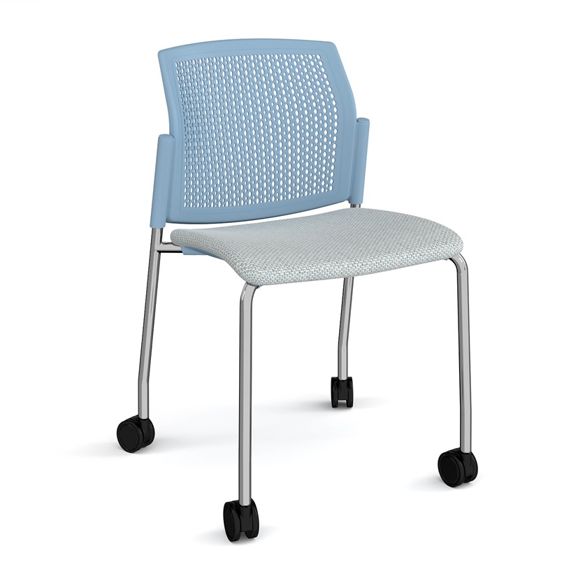 Dams Santana 4 Leg Mobile Chair With Fabric Seat And Perforated Back With Castors And No Arms – Made To Order