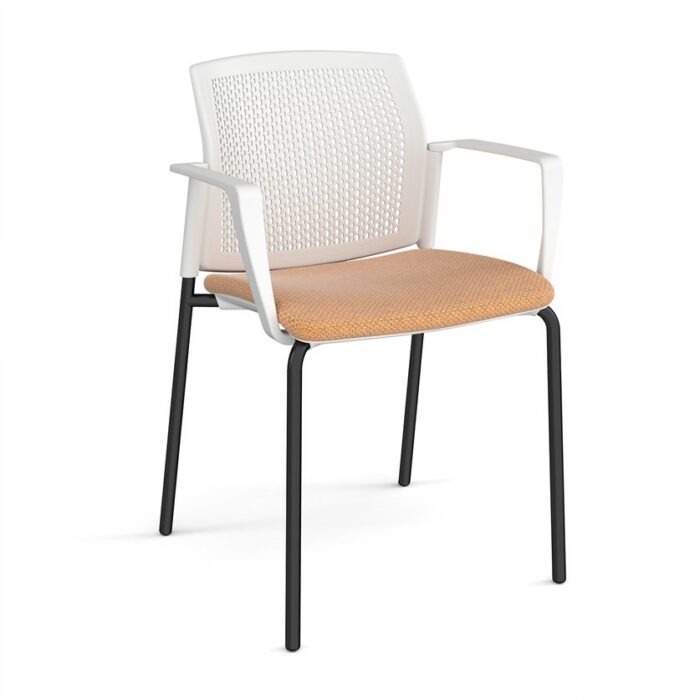 • Black 4 leg frame with perforated plastic back and upholstered seat