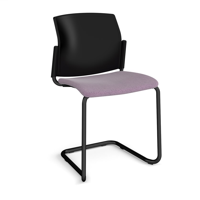 • Black 4 leg frame with solid plastic back and upholstered seat