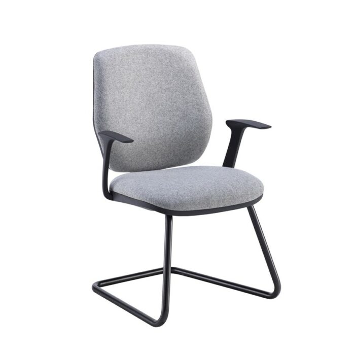 - Fabric visitor chair with black cantilever frame and fixed arms