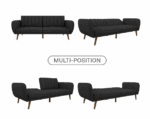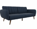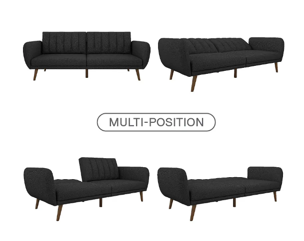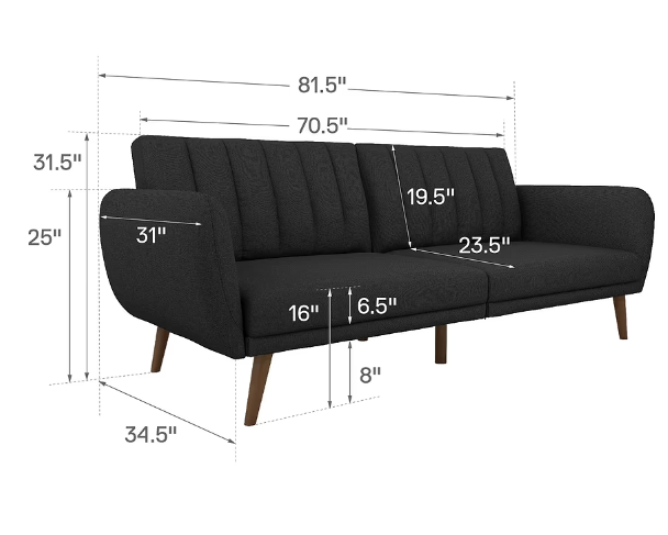 Be embraced by the comfortable cushioning of the Brittany linen futon. With its ribbed tufted cushioned back, the Brittany Linen futon gives your body all the support you need to sit and relax for hours. The combination of curved armrests and slanted legs work together to provide a unique rounded look that stands out. The linen upholstery adds another element of elegance making this a perfect statement piece for any living space.