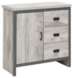 Give your home the design-led storage it deserves with this impressive, compact furnishing piece. The industrial styling with distressed finish incorporates both drawer and shelf options, while creating an urban look and feel that will enhance any living space. Press it into use for housing everyday dining accessories or as a chic repository for home office essentials. Incorporating a slender column of three drawers plus side cupboard with adjustable shelf. Complete with black metal handles and drawer pulls.