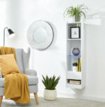 If you have well-thought-out storage, you’ll automatically reduce clutter in your living space. These slender wall-mounted units are a great choice for the smaller home, offering four separate shelf cubbies in a tall form that allows you to store and display your precious items without taking up floorspace. Three open shelves are set above a lower, partially enclosed shelf with lift-up door – all benefiting from a sleek, monochrome finish and high gloss feature front panels. Featuring blue battery-powered LED downlighting for added impact.
