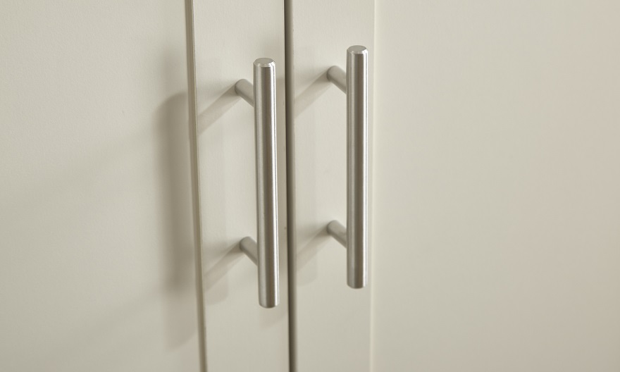 Super Complete Bedroom Bundle – It?s easy to create a bedroom that showcases effortless chic, with this stylish four-piece furnishing pack. The shaker-inspired design exudes understated luxury. Comprising a three-door wardrobe, four-drawer chest and pair of neat lamp tables, each piece is finished in ivory cream foil with an oak top and brushed steel handles. A well-thought-out mix of hanging and flat storage that?s suitable for a double room.
